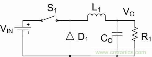 Buck電路是最常用的降壓開(kāi)關(guān)電源。圖1所示為非同步的Buck電路。