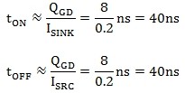 由QGD可先計(jì)算出MOSFET的開(kāi)通關(guān)斷時(shí)間為: