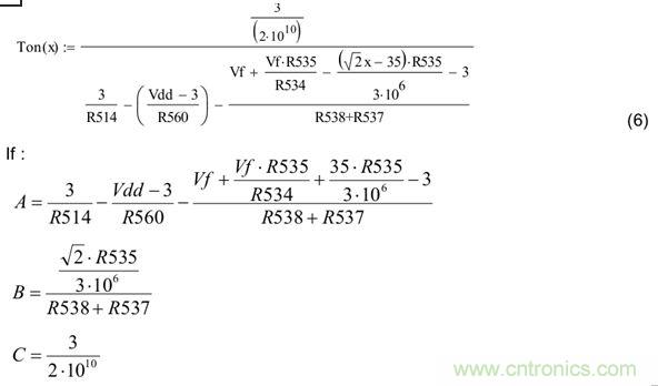 假設(shè)Vin_rms= x,Ton和Vin_rms之間的關(guān)系可計(jì)算如下: