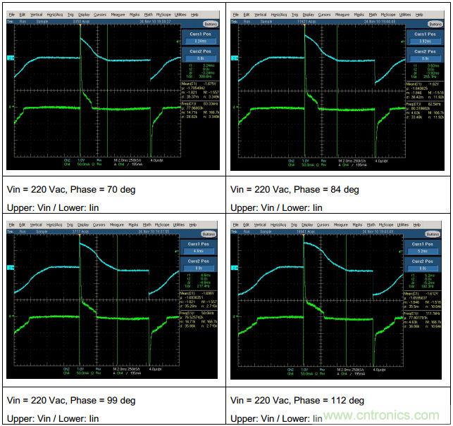 圖11:不同導(dǎo)通角的輸入電流與輸入電壓