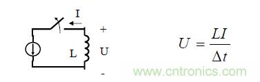 2. 當(dāng)一電感上的電流突然中斷, 在其兩端會(huì)產(chǎn)生一瞬時(shí)高壓, 并且電感量越大該電壓越高。