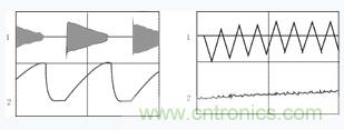 圖6為實測波形,(b)圖示出(a)圖的前幾個周期。圖中上部是變壓器原邊電源i1波形,下部是儲能電容U0的電壓波形,與圖3仿真波形對應(yīng)。由圖中看出,i1為零后,U0并未立刻下降,而是保持一段時間,這是因為充放電時間固定的緣故,當(dāng)U0達到預(yù)定值后保持至充電時間終了。