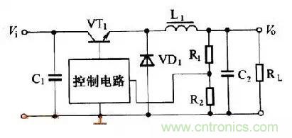 DC-DC就是直流-直流變換,一般有升壓(BOOST)、降壓(BUCK型)兩種。降壓式DC/DC變換器的輸出電流較大,多為數(shù)百毫安至幾安,因此適用于輸出電流較大的場合。降壓式DC/DC變換器基本工作原理電路如下圖所示。VT1為開關管,當VT1導通時,輸入電壓Vi通過電感L1向負載RL供電,與此同時也向電容C2充電。在這個過程中,電容C2及電感L1中儲存能量。當VT1截止時,由儲存在電感L1中的能量繼續(xù)向RL供電,當輸出電壓要下降時,電容C2中的能量也向RL放電,維持輸出電壓不變。二極管VD1為續(xù)流二極管,以便構成電路回路。輸出的電壓Vo經(jīng)R1和R2組成的分壓器分壓,把輸出電壓的信號反饋至控制電路,由控制電路來控制開關管的導通及截止時間,使輸出電壓保持不變。