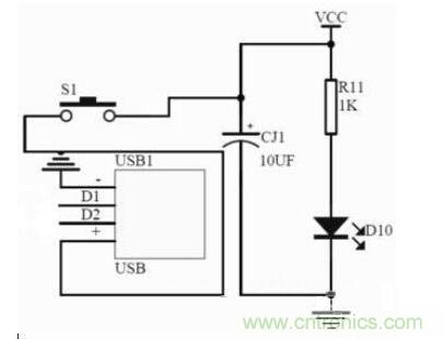 此最小系統(tǒng)中的電源供電模塊的電源可以通過(guò)計(jì)算機(jī)的USB口供給,也可使用外部穩(wěn)定的5V電源供電模塊供給。電源電路中接入了電源指示LED,圖中R11為L(zhǎng)ED的限流電阻。S1為電源開關(guān)。