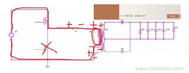 上管開(kāi)通,注意諧振電感、勵(lì)磁電感、諧振電容的正負(fù)