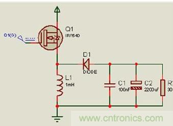 占空比為D的PWM波控制開關(guān)管Q1,從而達(dá)到這樣的一個(gè)效果,交替導(dǎo)通或截止,再經(jīng)L和C濾波器在負(fù)載R上得到穩(wěn)定直流輸出電壓Uo。本電路屬于降壓型電路,題目要求的30--36V 的輸出電壓是實(shí)現(xiàn)不了的。