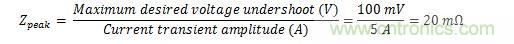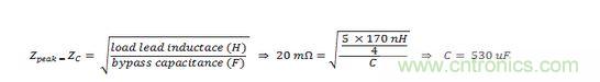 根據(jù)下面的表達(dá)式,確定負(fù)載導(dǎo)線網(wǎng)絡(luò)的指定峰值阻抗和旁路電容: