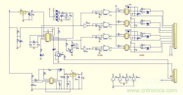 SPWM的核心部分采用了TDS2285單片機(jī)芯片。U3、U4組成時(shí)序和死區(qū)電路,末級(jí)輸出用了4個(gè)250光藕,H橋的二個(gè)上管用了自舉式供電方式,這樣做的目的是簡化電路,可以不用隔離電源。