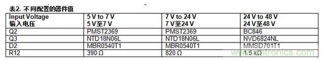 表2總結(jié)了針對(duì)不同輸入電壓配置而選擇的替代器件。