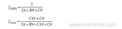Type II補(bǔ)償網(wǎng)絡(luò)的零點(diǎn)和極點(diǎn)由下式得出: