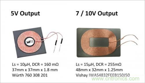 雖然理想狀態(tài)是最大限度地減少線圈的直流電阻(DCR),但是在較高的輸出電壓情況下,允許稍微地增加DCR來應對較低的電流。圖7顯示的是兩個典型RX端線圈。所有RX和TX線圈組裝時需要背面屏蔽材料。