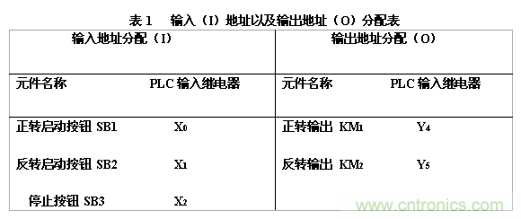 由上圖可知,PLC程序在使用中軟件互鎖功能并不可靠。因此,需在硬件總添加互鎖,地址分配表如表1所示,除了在硬件中添加互鎖外,還需做一個熱保護裝置。