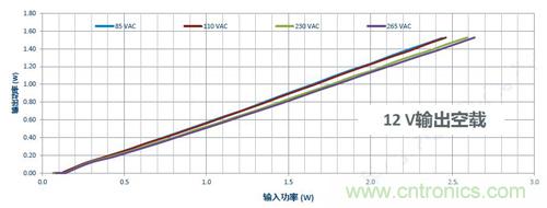在輕載時,InnoSwitch-EP IC仍然可以保持高效率,能夠達到EC ErP標準的要求。值得一提的是,PI提供的數(shù)據(jù)顯示,0.5W輸入待機功耗時可帶載功率約為0.25W,這樣的帶載功率是可以滿足很多具有物聯(lián)網功能的設備需要的。(見圖6)