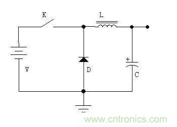 開關(guān)電源是一種比較新型的電源。它具有效率高,重量輕,可升、降壓,輸出功率大等優(yōu)點(diǎn)。但是由于電路工作在開關(guān)狀態(tài),所以噪聲比較大。 通過下圖,我們來簡單的說說降壓型開關(guān)電源的工作原理。如圖所示,電路由開關(guān)K(實(shí)際電路中為三極管或者場效應(yīng)管),續(xù)流二極管D,儲(chǔ)能電感L,濾波電容C等構(gòu)成。當(dāng)開關(guān)閉合時(shí),電源通過開關(guān)K、電感L給負(fù)載供電,并將部分電能儲(chǔ)存在電感L以及電容C中。由于電感L的自感,在開關(guān)接通后,電流增大得比較緩慢,即輸出不能立刻達(dá)到電源電壓值。一定時(shí)間后,開關(guān)斷開,由于電感L的自感作用(可以比較形象的認(rèn)為電感中的電流有慣性作用),將保持電路中的電流不變,即從左往右繼續(xù)流。這電流流過負(fù)載,從地線返回,流到續(xù)流二極管D的正極,經(jīng)過二極管D,返回電感L的左端,從而形成了一個(gè)回路。通過控制開關(guān)閉合跟斷開的時(shí)間(即PWM——脈沖寬度調(diào)制),就可以控制輸出電壓。如果通過檢測輸出電壓來控制開、關(guān)的時(shí)間,以保持輸出電壓不變,這就實(shí)現(xiàn)了穩(wěn)壓的目的。