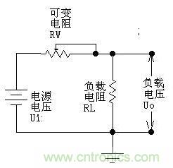 工作原理:我們先用下圖來說明線性穩(wěn)壓電源調(diào)節(jié)電壓的原理。如下圖所示,可變電阻RW跟負(fù)載電阻RL組成一個(gè)分壓電路,輸出電壓為: