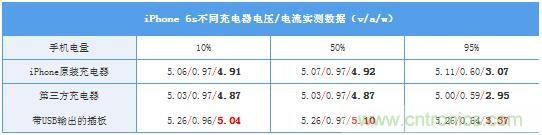 測(cè)試結(jié)果顯示,在測(cè)試的兩個(gè)時(shí)段(快速充電階段/涓流充電階段)使用第三方充電器與iPhone原裝充電器的輸出功率基本一樣,此時(shí)充電速度相當(dāng),而帶USB輸出的插板此時(shí)輸出電壓比較大,輸出功率也領(lǐng)先于另外兩者。所以充電速度排名(估測(cè))為:帶USB的插座》iPhone原裝充電器=第三方充電器(由快到慢)。當(dāng)然,不同的第三方充電器/帶USB的插座有不同輸出的效果。