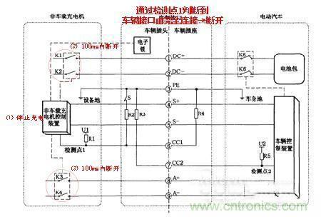 1)在充電過(guò)程中,非車(chē)載充電機(jī)控制裝置通過(guò)對(duì)檢測(cè)點(diǎn)1的電壓進(jìn)行檢測(cè),如果判斷