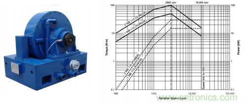 但問題來了,電動汽車電機的TN曲線和普通的電機不同,具有恒功率區(qū)域?qū)挘ㄒ话愫愎β蕝^(qū)域能到峰值轉速的80%~100%)、峰值轉速高(10000rpm以上)的特點,這意味著電動汽車電機既能實現(xiàn)高速小扭矩工況,也能實現(xiàn)低速大扭矩工況,對測功機的TN特性提出了非常高的要求。