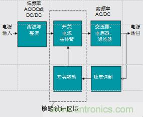 開(kāi)關(guān)模式電源(SMPS)在電力轉(zhuǎn)換領(lǐng)域逐漸發(fā)展壯大,其原因在于其固有效率高于傳統(tǒng)電源設(shè)計(jì)。但是,不斷完善SMPS設(shè)計(jì)是一項(xiàng)永不止息的藝術(shù)。這些電源在高頻時(shí)產(chǎn)生電流,但必須防止這些高頻流入系統(tǒng),并且避免其流回電源。另外,電源中的敏感元器件的運(yùn)行容易受到內(nèi)部阻抗和周?chē)M件的影響。由于上述原因,SMPS解決方案盡可能地將系統(tǒng)集成,從而幫助降低電源設(shè)計(jì)的復(fù)雜性,并且減少制造成本。如果這個(gè)解決方案能夠?qū)⑿⊥庑纬叽绺綦x與功率電路包含在內(nèi),那么效果會(huì)更好,其原因是它有效將系統(tǒng)屏蔽于外界干擾,并且防止高頻從系統(tǒng)內(nèi)部遷移到線路上。