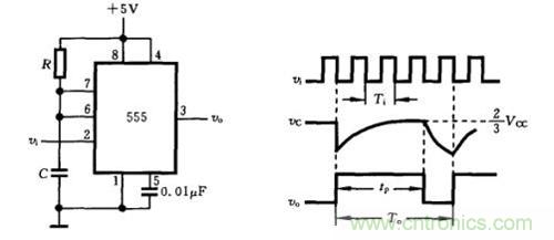 輸出脈沖延遲時(shí)間tp=1.1RC 輸出脈沖周期T0=NTi