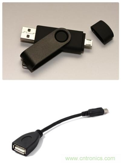 圖1:USB OTG驅(qū)動器(左)和USB連接線(右)