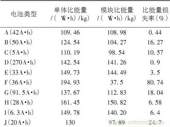 組成模組后,由于連接件及固定支架的原因,能量密度均有所下降,比能量損失率見上表。其中F型36Ah軟包裝三元電池模組能量密度損失最大,主要原因是含有散熱裝置和外殼,且出于模組安全性考量設計的金屬外殼材質(zhì)較厚;A42Ah方形硬殼磷酸鐵鋰電池和E型33Ah方形硬殼三元電池組成模塊后能量密度損失最小,主要是未包含模塊外殼,無固定裝置,僅增加了連接片的重量動力電池模塊和系統(tǒng)能量密度,是電動車能否在未來市場媲美傳統(tǒng)燃油汽車的關(guān)鍵未來動力電池模塊及電池系統(tǒng)輕量化設計,是提高電動汽車續(xù)航里程的關(guān)鍵技術(shù)。