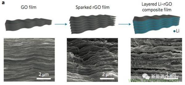 金屬鋰的另一大問題就是體積變化大,導(dǎo)致界面波動(dòng)大,容易破壞界面結(jié)構(gòu),目前比較好的解決辦法主要有氧化石墨烯載體(如下圖所示),誘導(dǎo)沉積等方法,利用載體內(nèi)部的空間儲(chǔ)存金屬鋰,從而最大限度的減少在充放電過程中電極的體積變化「1」。
