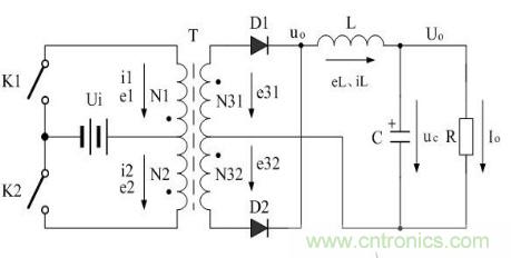 它的兩個(gè)開關(guān)器件有一個(gè)公共接地端,相對于半橋式或全橋式開關(guān)電源來說,驅(qū)動(dòng)電路要簡單很多,這也是一個(gè)優(yōu)點(diǎn)。