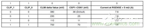 表2:5 m檢測(cè)電阻對(duì)應(yīng)的峰值過(guò)流保護(hù)值(反向過(guò)流保護(hù))