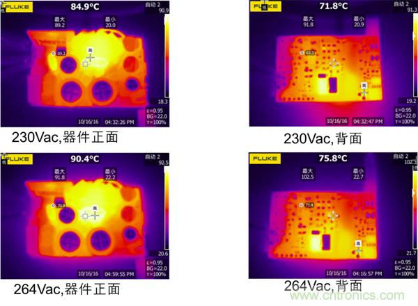 該方案在230 Vac、滿載條件下的開(kāi)關(guān)頻率高達(dá)約130 KHz。
