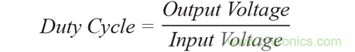 開(kāi)關(guān)導(dǎo)通時(shí))和斷開(kāi)時(shí)間(當(dāng)主開(kāi)關(guān)斷開(kāi)時(shí))之間的關(guān)系。降壓轉(zhuǎn)換器的占空比由以下公式定義: