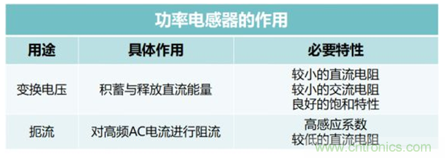 功率電感器一般用于電源處,能承受較大電流。電源電路中的電感器的主要用途有“變換電壓用”以及“扼流用”,并被用于各種電子設(shè)備中。