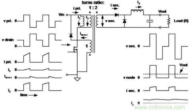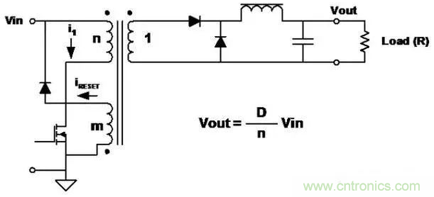 ■在每個開關(guān)周期中必須對變壓器磁芯去磁。常用的做法是增加一個與初級繞組匝數(shù)相同的繞組。