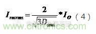 (2)流過輸出整流器的有效值電流與峰值電流的關(guān)系: