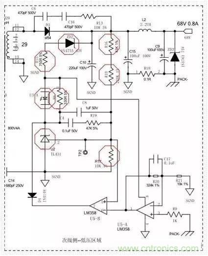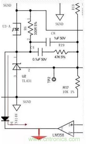C8、C4、R19組成了431所需的回收回路補(bǔ)償,以便穩(wěn)定控制回路。