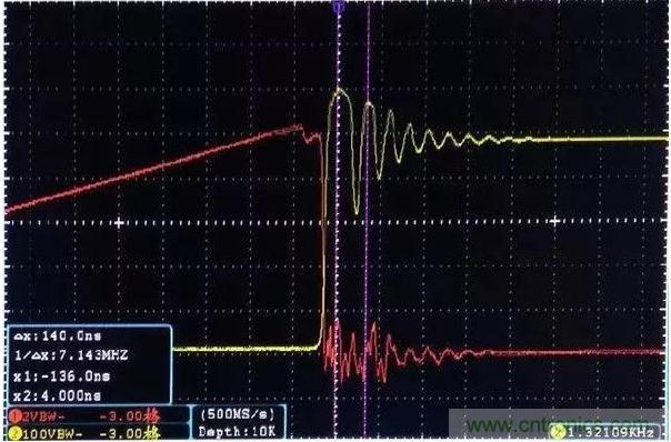 非CCM模式,建議在原邊MOS驅(qū)動(dòng)上動(dòng)手腳,增加導(dǎo)通電阻、減緩導(dǎo)通速率、利用米勒效應(yīng)轉(zhuǎn)移功率、達(dá)成減小甚至完全消除副邊二極管反壓尖峰之目的。此法可完全省掉RC吸收,收獲最高整機(jī)效率。即使有過渡到CCM模式,上述導(dǎo)通電阻也應(yīng)做適應(yīng)性調(diào)整,采用一個(gè)合理取值,配合RC吸收達(dá)成目的。