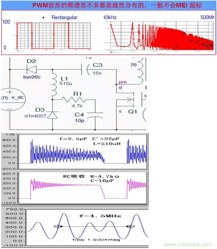 引起電流尖峰第二種情況是對電容的充放電電流。這些電容可能是:電路分布電容、變壓器繞組等效分布電容、設(shè)計不恰當?shù)奈针娙荨⒃O(shè)計不恰當?shù)闹C振電容、器件的等效模型中的電容成分等等。