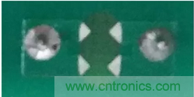 另一種辦法是在PCB設(shè)計時,在共模電感兩端加入放電齒,使得電感通過兩放電尖端放電,避免通過其他路徑放電,從而使得對周圍和后級器件的影響減到最小。如圖3是ZLG致遠(yuǎn)電子型號為PA1HBxOD-10W的電力電源模塊PCB在共模電感處加入的放電齒的實物圖。