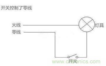 1、開(kāi)關(guān)控制了零線(xiàn),火線(xiàn)直接進(jìn)了燈具