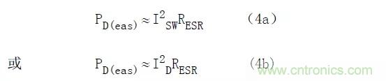 輸入輸出電容是功率開關或輸出整流器產(chǎn)生的高頻電流的唯一來源(或儲存處),所以通過觀察這些電流波形可以合理地確定流過這些電容ESR的電流。這個電流不可避免地在電容內產(chǎn)生熱量。設計濾波電容的主要任務就是確保電容內部發(fā)熱足夠低,以保證產(chǎn)品的壽命。式(4)給出了電容的ESR所產(chǎn)生的功率損耗的計算式。