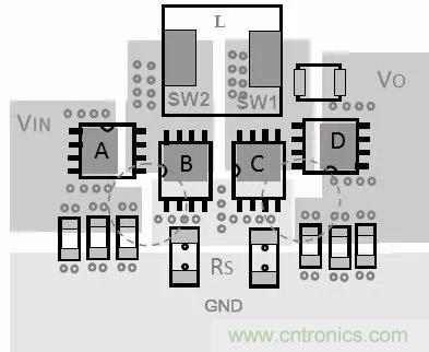 兩者的兼顧對PCB設(shè)計要非常的小心,開關(guān)回路中du/dt比較大的節(jié)點SW1和SW2及其回路,要盡可能的小,因為這些環(huán)路產(chǎn)生很大的電場發(fā)射。