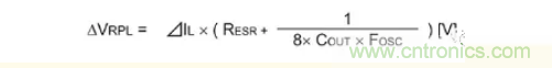 由此公式可知,輸出紋波電壓如果要變小的話,須降低ESR,增加輸出電容器,提高開關(guān)頻率,使IL在必要最低限。
