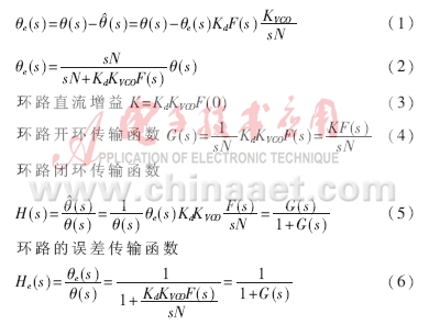 假定檢相特性為正弦形,可求出鎖相環(huán)路的開環(huán)傳遞函數(shù)、閉環(huán)傳遞函數(shù),以及誤差傳輸函數(shù)等。