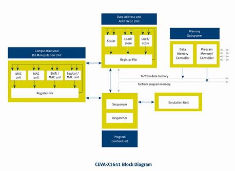 CEVA-X1641是CEVA-XDSP系列中的一款四MAC單元產(chǎn)品,由4個16位數(shù)據(jù)寬度的MAC單元組成。在65nm的最差條件下,CEVA-X1641也能夠在700MHz以上的高頻下運行。