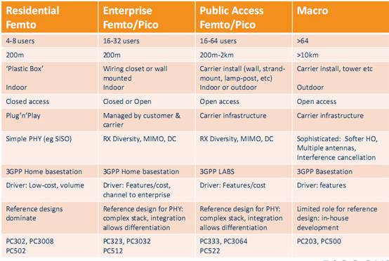 Picochip不僅提供低成本的家庭接入產(chǎn)品,還提供針對(duì)企業(yè)和公共接入的大規(guī)模64用戶系統(tǒng),滿足多層次全方面的市場(chǎng)需求。多樣化產(chǎn)品如下圖所示。