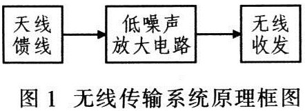 圖1為無線傳輸系統(tǒng)原理框圖。接收端的功率放大電路模塊由于信道具有衰減特性,經(jīng)遠(yuǎn)距離傳輸?shù)竭_(dá)接收端的射頻信號(hào)電平多是μV數(shù)量級(jí),因此需放大微弱的射頻信號(hào)。同時(shí),信道中還存許多干擾信號(hào),即噪聲,所以該系統(tǒng)設(shè)計(jì)應(yīng)采用低噪聲的射頻功率放大電路。