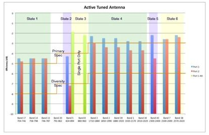 圖5:覆蓋所有3G/ 4G應(yīng)用,且具有兩個MIMO天線端口的狀態(tài)調(diào)諧式iMAT結(jié)構(gòu)