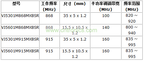 VJ5301M868MXBSR、VJ5301M915MXBSR、VJ5601M868MXBSR和VJ5601M915MXBSR采用貴金屬電極技術(shù)(NME)和濕法加工工藝,具有高可靠性、陶瓷氧化物本體結(jié)構(gòu)。符合RoHS的片式天線也符合per IEC 61249-2-21的無鹵素規(guī)定,可用標(biāo)準(zhǔn)的回流焊安裝到PCB板上。