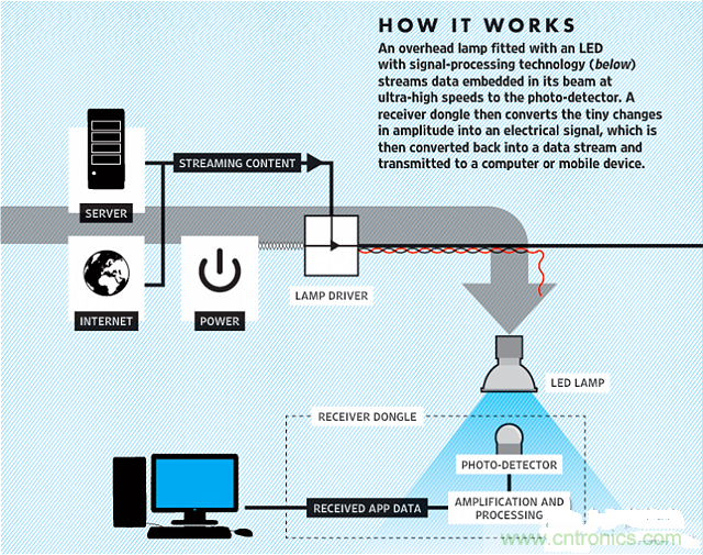 使用這種技術(shù)的LED燈泡不會(huì)出現(xiàn)視覺(jué)效果上的不同——光脈沖編碼的信息太微小,加上傳輸速度之快,肉眼是看不見(jiàn)的。此外,目前尚不清楚這種更快速的數(shù)據(jù)傳輸技術(shù)是否會(huì)增加LED燈和光學(xué)探測(cè)器的成本。