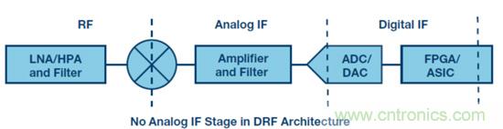 直接射頻架構(gòu)是例外,其中數(shù)據(jù)轉(zhuǎn)換器直接對射頻信號采樣,因而沒有模擬中頻級,信號鏈僅由射頻級和數(shù)字中頻級構(gòu)成。